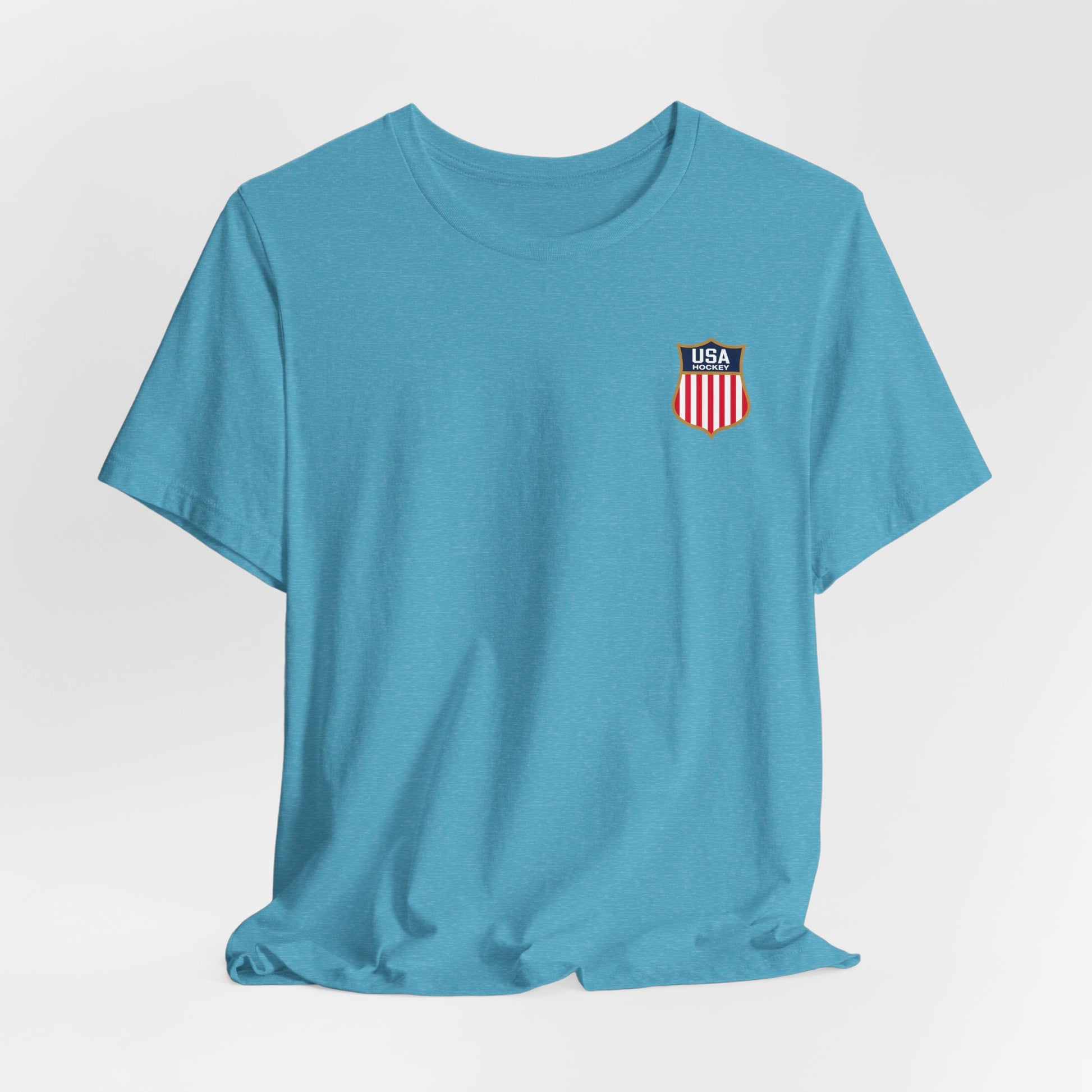 A lightweight, breathable tee that carries quiet pride and the energy of a triumphant moment. The soft Airlume combed and ring-spun cotton feels gentle against skin while the retail crew cut keeps the silhouette clean and easy to layer. A small, shield-style USA emblem over the heart and a larger back print showing an athlete wrapped in the flag give this shirt a nostalgic, stadium-ready vibe — like catching the afterglow of a big win and wearing that feeling home. It sits comfortably in everyday wardrobes for people who want subtle patriotism and a vintage-sports aesthetic without shouting for attention. Durable side seams, a ribbed collar, and shoulder tape keep the fit looking sharp through wear and wash. Tear-away labeling reduces irritation, and the responsibly made blanks reflect conscious production choices.